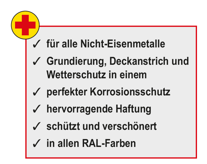 | Substrates: | Verzinkte Untergründe, verzinkter Stahl, Aluminium, Kupfer und anderen Metallen |