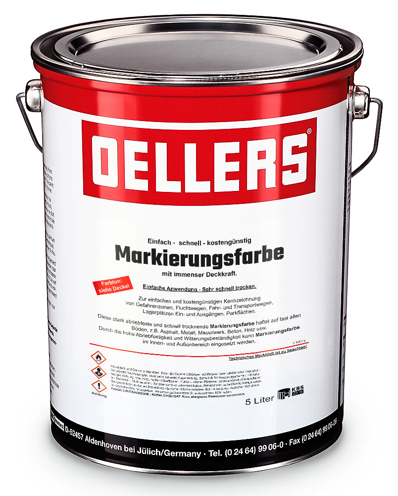 En intérieur ou en extérieur : La peinture pour marquage résistante à l’usure OELLERS peut être utilisée pour signaler les zones de dangers ou les sorties de sécurité de façon sure ou pour marquer des zones de travail ou des emplacements dans un entrepôt. Cette peinture résistante aux intempéries peut être utilisée sur un grand nombre de supports. Nous vous proposons la peinture de marquage OELLERS dans les coloris classiques blanc et jaune mais aussi dans d’autres couleurs du nuancier RAL à des prix intéressants.