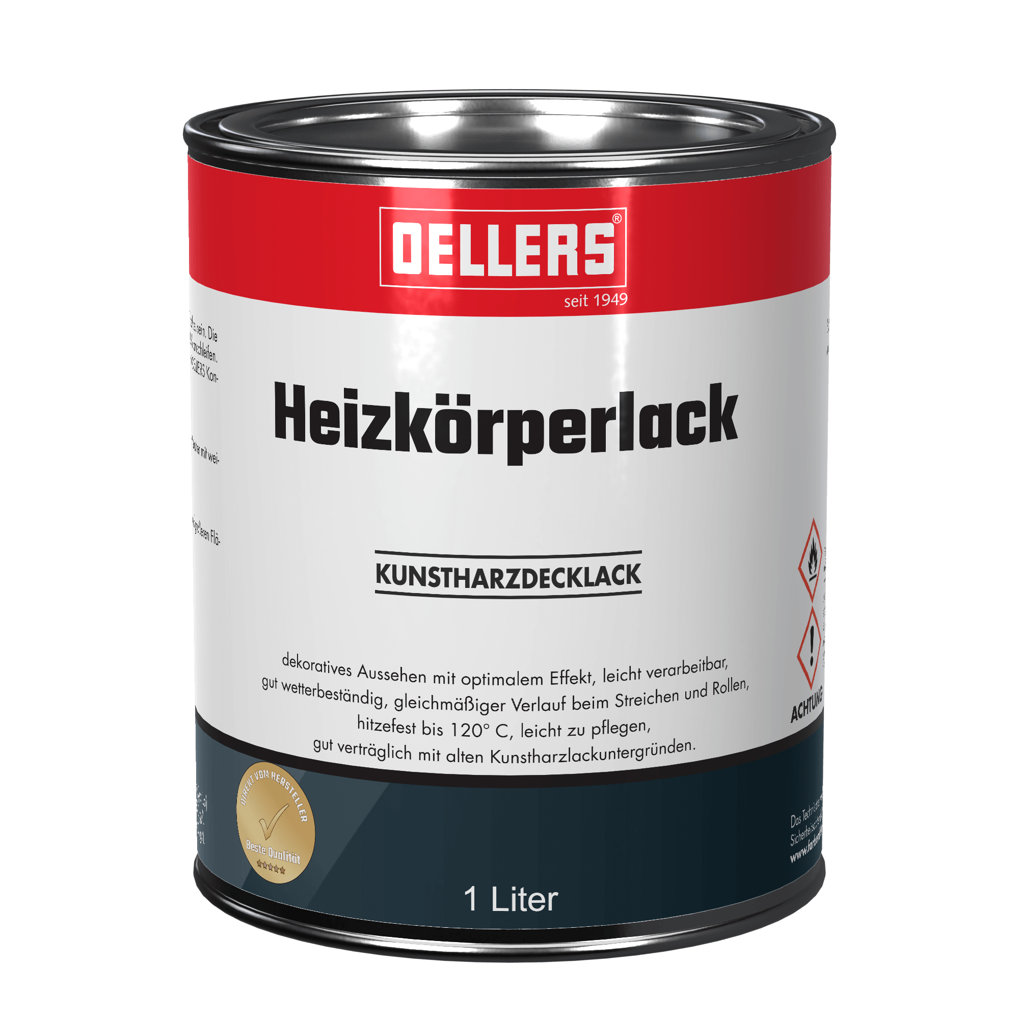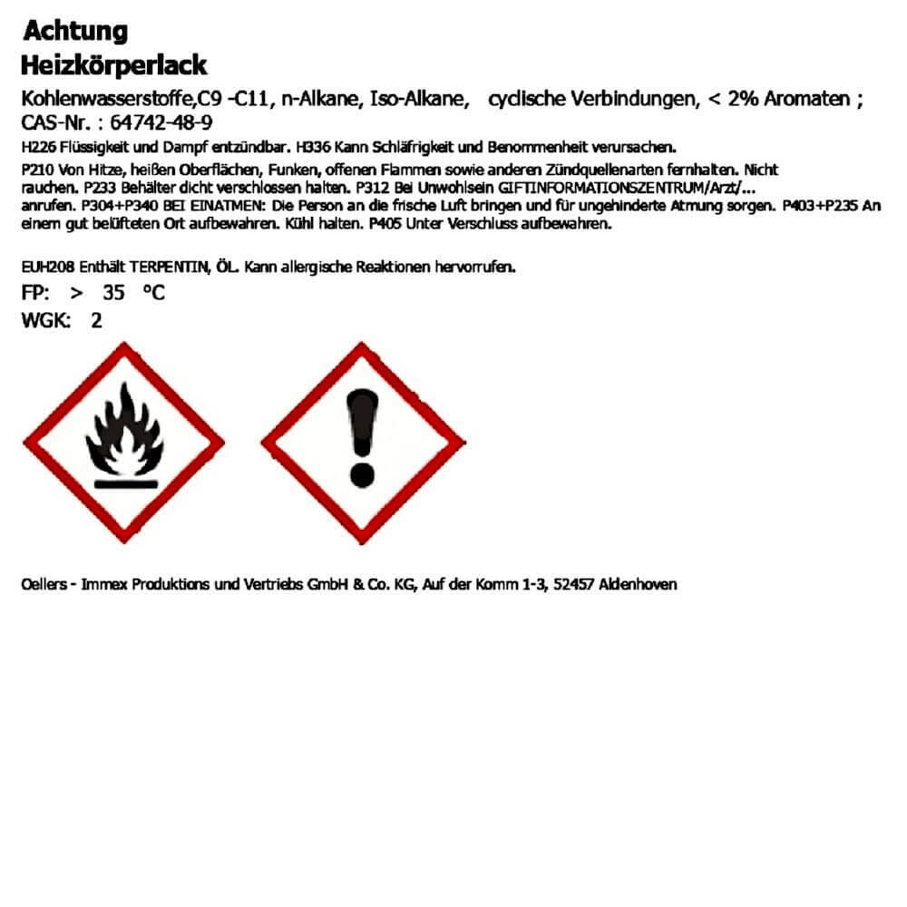 Petits et grands radiateurs ont l'air comme neufs lorsque qu'ils ont été repeints avec la peinture pour radiateurs OELLERS. Cette laque à base de résines synthétiques est d'utilisation facile et donne une apparence décorative aux surfaces en métal. Elle est résistante à la chaleur jusqu'à une température de 120°C.